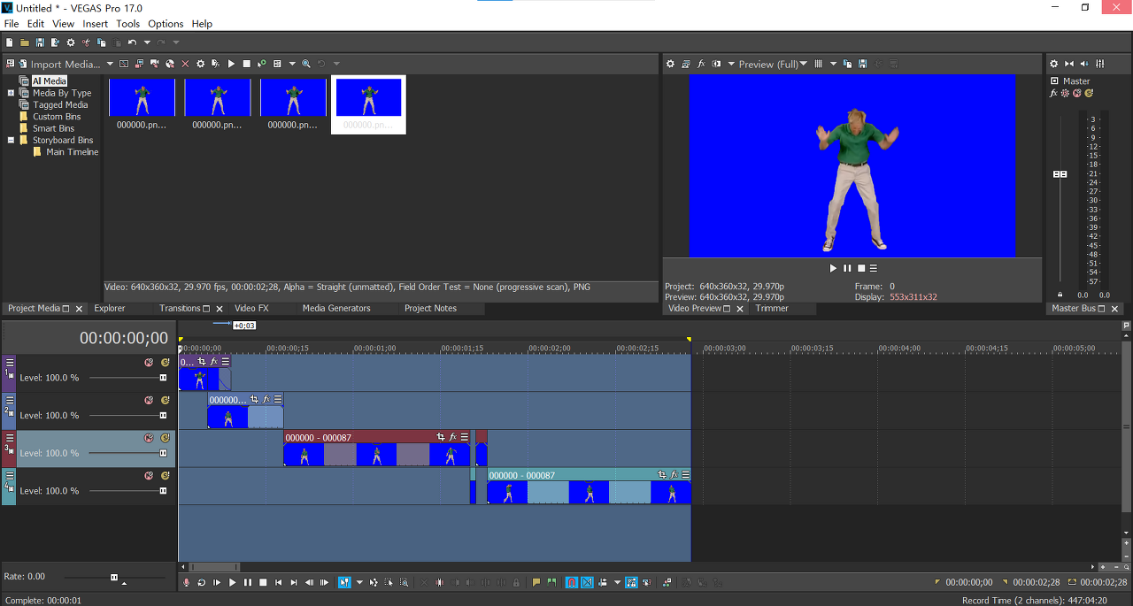 만약 위와 같이 렌더링을 한다면 결과물은 그렇게 좋지 못할 겁니다. 왜냐하면 이 프로그램이 팔의 뒷부분 같이 안 보이는 부분에 대해서 BB를 생성하진 못하기 때문입니다. 그래서 저는 다른 프레임을 몇개 더 선택해서 여러개의 결과물을 만든 다음, 베가스에서 그걸 합쳤습니다.