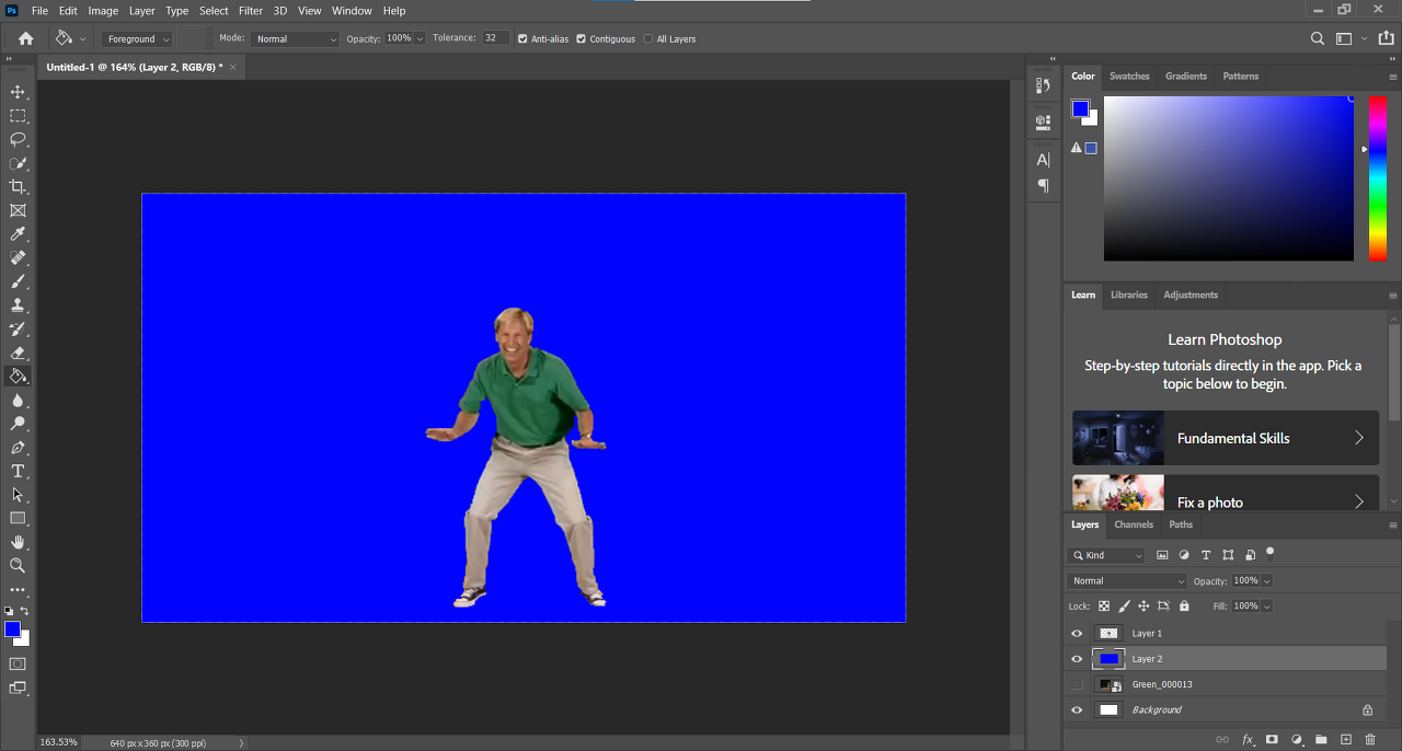 EBSynth를 사용하기 위해서는 이미 배경을 아래 사진처럼 단색으로 바꾼 한 프레임이 있어야합니다. 저는 이 작업을 포토샵으로 했지만, 포토샵이 없는 분이라면 베가스나 에펙으로도 같은 작업이 가능합니다.