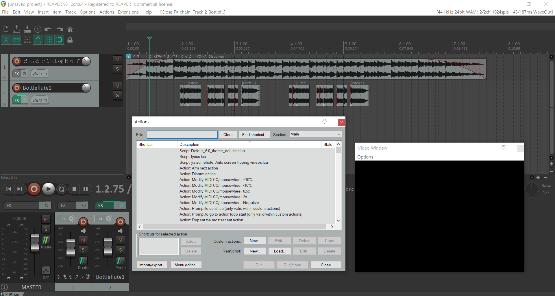 우선 리퍼에서 View > Video (혹은 Ctrl + Shift + V), Actions > Show action list (혹은 Shift + /)를 통해서 비디오 창(오른쪽)과 스크립트 실행창(왼쪽)을 열어줍니다.